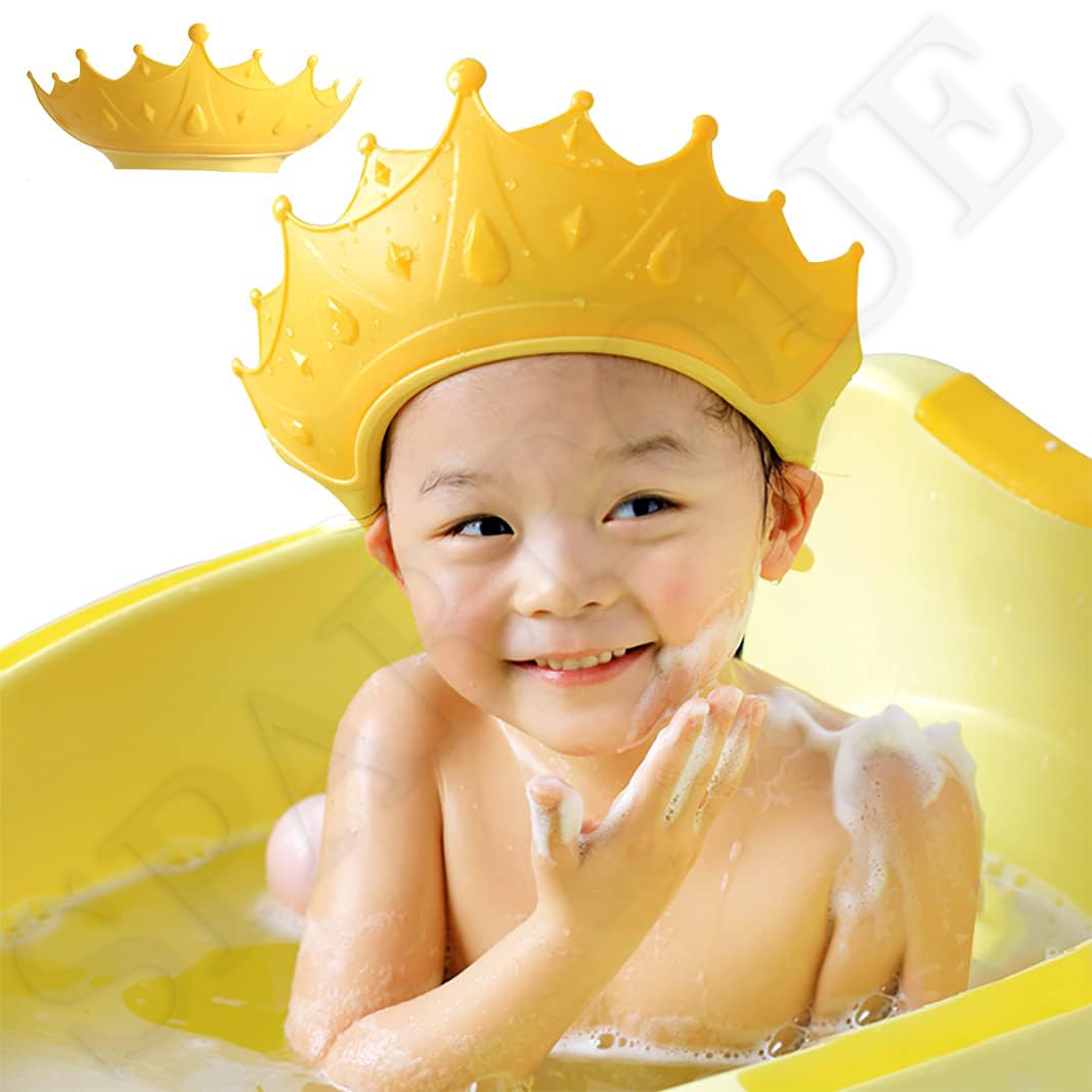 Baby bath Shower Cap,Bath Visor hat for Eye and Ear wash Protection,Adjustable Silicone Bathing Crown Waterproof Shampoo